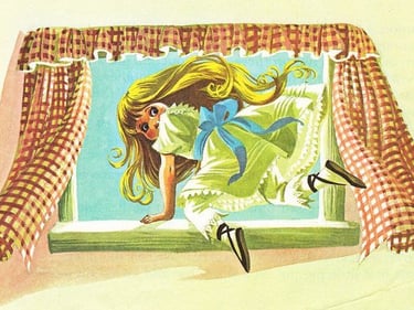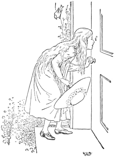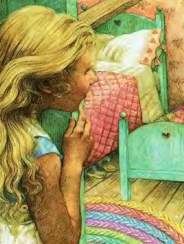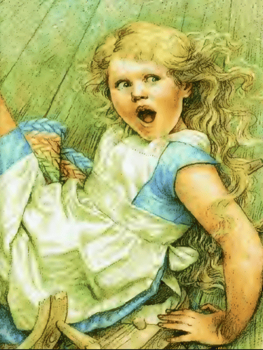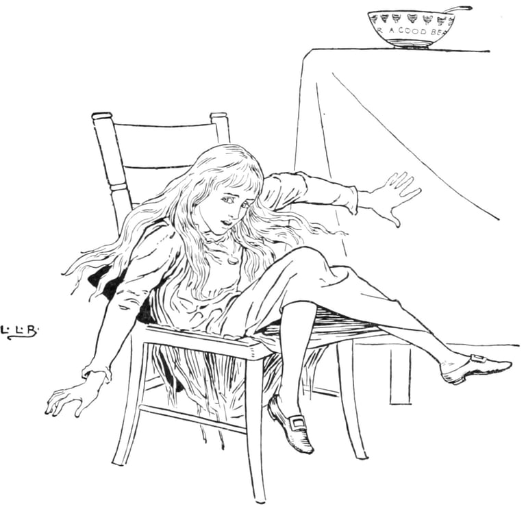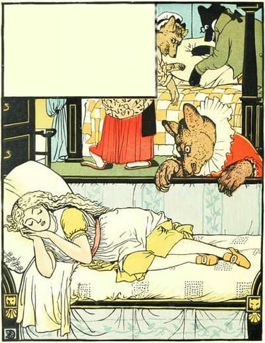 "Somebody has been lying in my bed, - and here she is still !" ("Quelqu'une s'est allongée dans mon lit... et y est encore !"