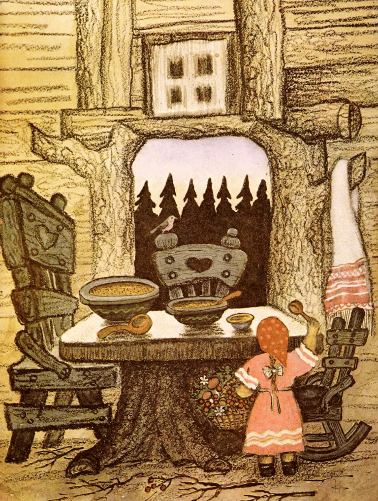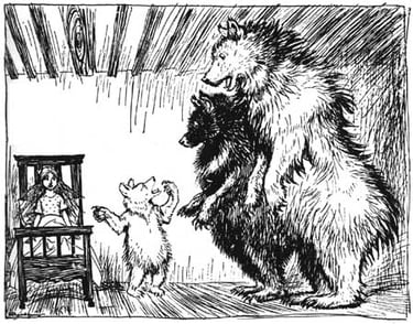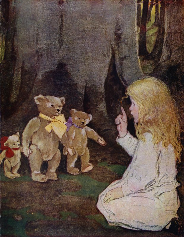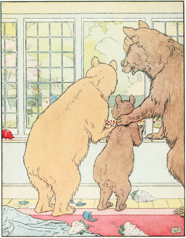 Arthur Rackham, illustration pour The Story of the Three Bears (L'histoire des trois ours) dans English Fairy Tales (Contes de fées anglais), Flora Annie Steel. English Fairy Tales, New York : Macmillan Company, 1918.