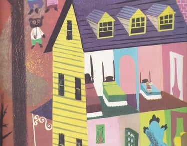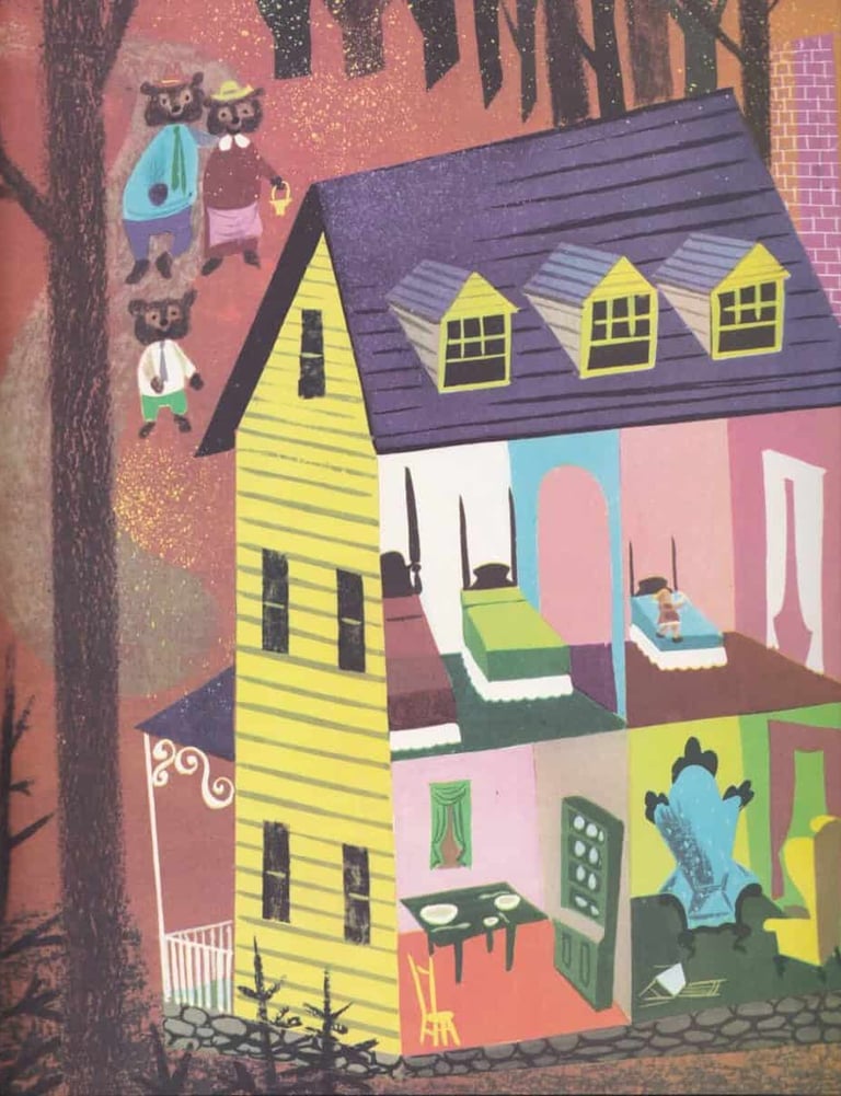 Leonard Weisgard, illustration pour The Three Bears (Les trois ours) dans The Big Book of Nursery Tales, Evelyn Andreas, 1954.