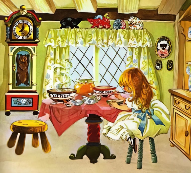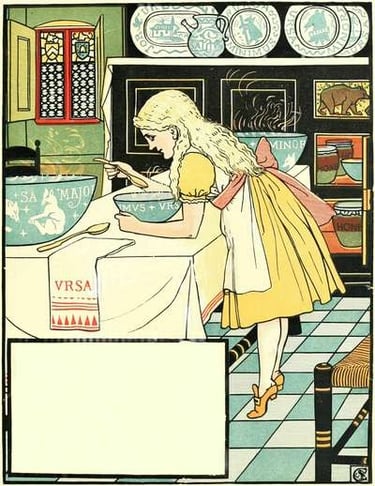 Illustrations pour Goldilocks (Boucle d'or), The Book of Knowledge, Arthur Mee and Holland Thompson, New York, NY : The Grolier Society, 1912.