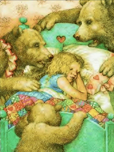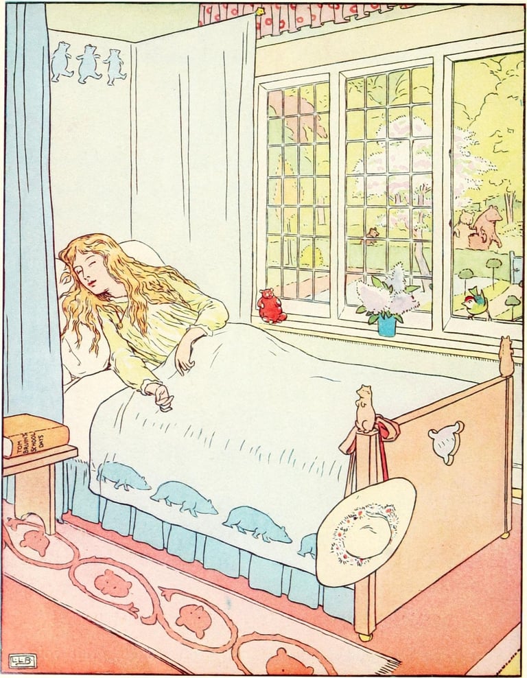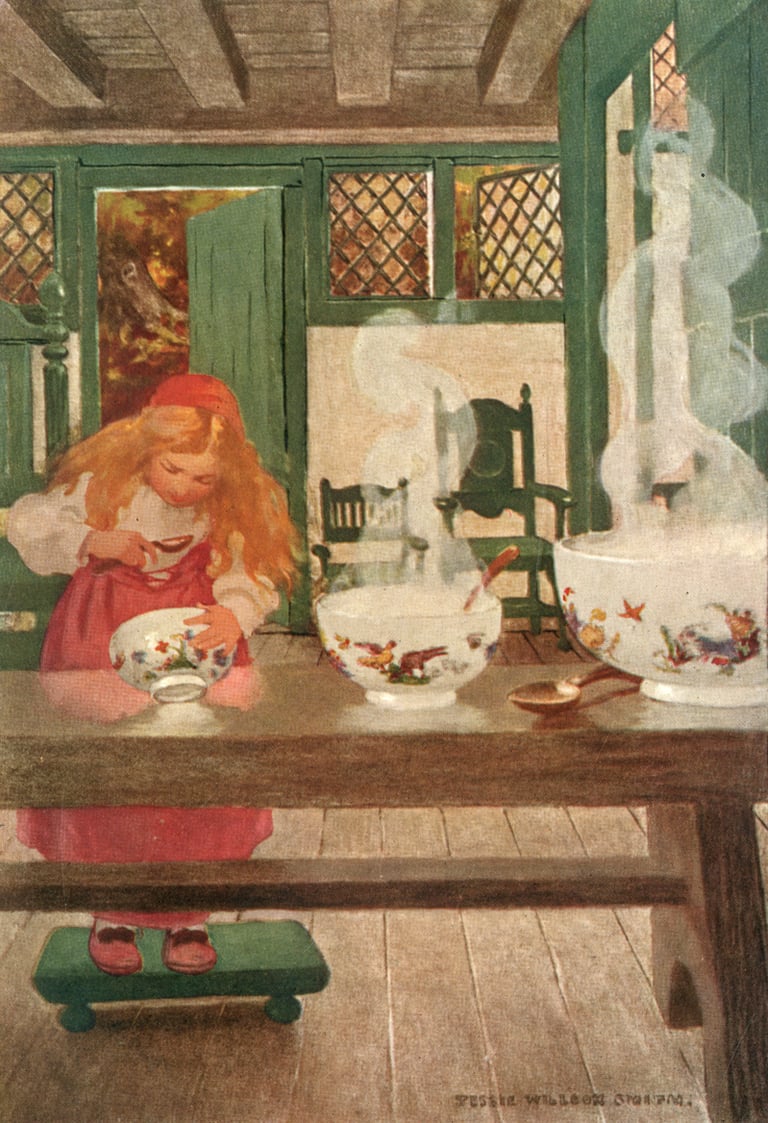 Jessie Willcox Smith, illustrations pour Goldilocks ; or The Three Bears (Boucle d'or ou les trois ours), Madame d'Aulnay, dans A Child’s Book of Stories (Livre d'histoires pour les enfants)(1911), Children's Classics, New York : Duffield & Co., édition de 1986, Dilithium Press.
