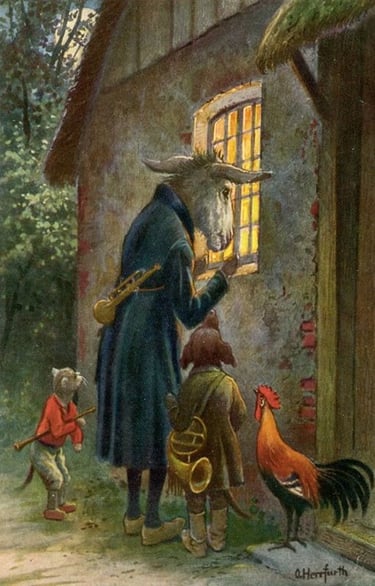 Site commons.wikimedia.org, consulté le 12 novembre 2025 : https://commons.wikimedia.org/wiki/File:Otto_Ubbelohde_-_Die_Bremer_Stadtmusikanten.jpg