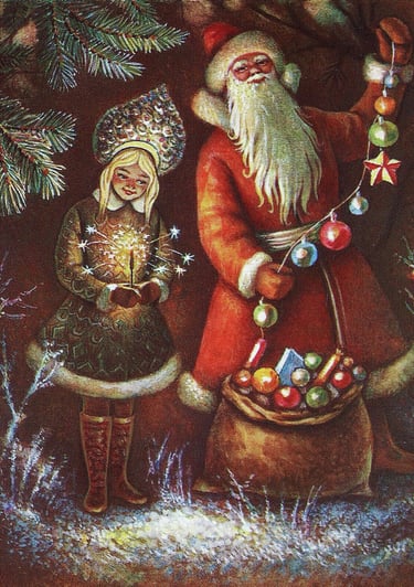 R. Dostian, Ded Moroz et Snegourotchka, carte postale des années 1980, archives principales de Moscou
