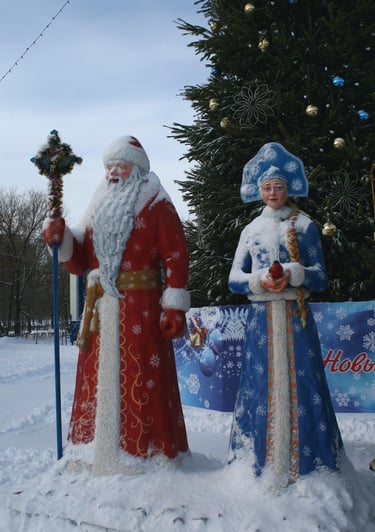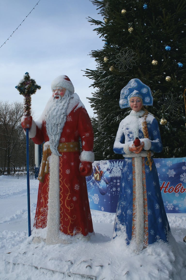 Ded Moroz et Snegurochka à Belovezhskaya Pushcha (Biélorussie), photographie de Yogi555 (?), décembre 2004