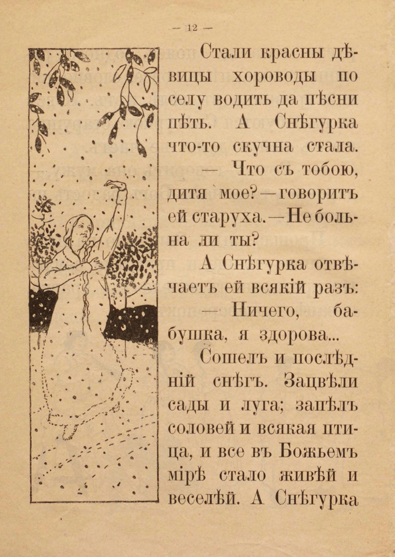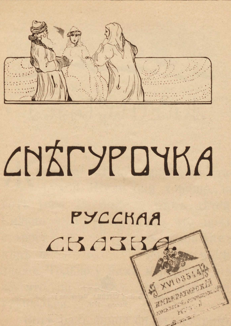 Illustrations pour Снегурочка: русская сказка (La Fille des neiges : conte russe), Éd. I. D. Sytina, Bibliothèque nationale russe, 1916, p. 1, 4, 6, 8, 10, 11, 12, 13, 15, 17, 19.