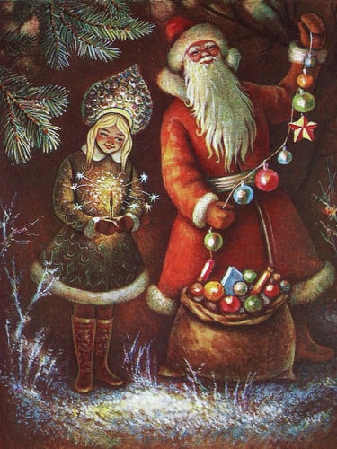 R. Dostian, Ded Moroz et Snegourotchka, carte postale des années 1980, archives principales de Moscou