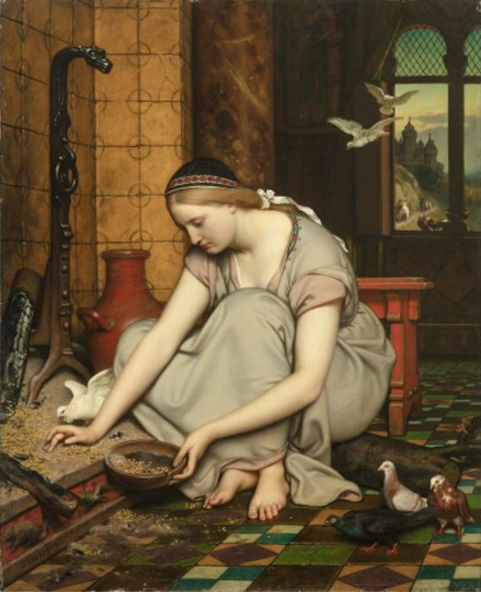 Jozef van Lerius, Cinderella (Cendrillon)(1866), huile sur panneau, 90,6 x 73,9 cm, collection inconnue.