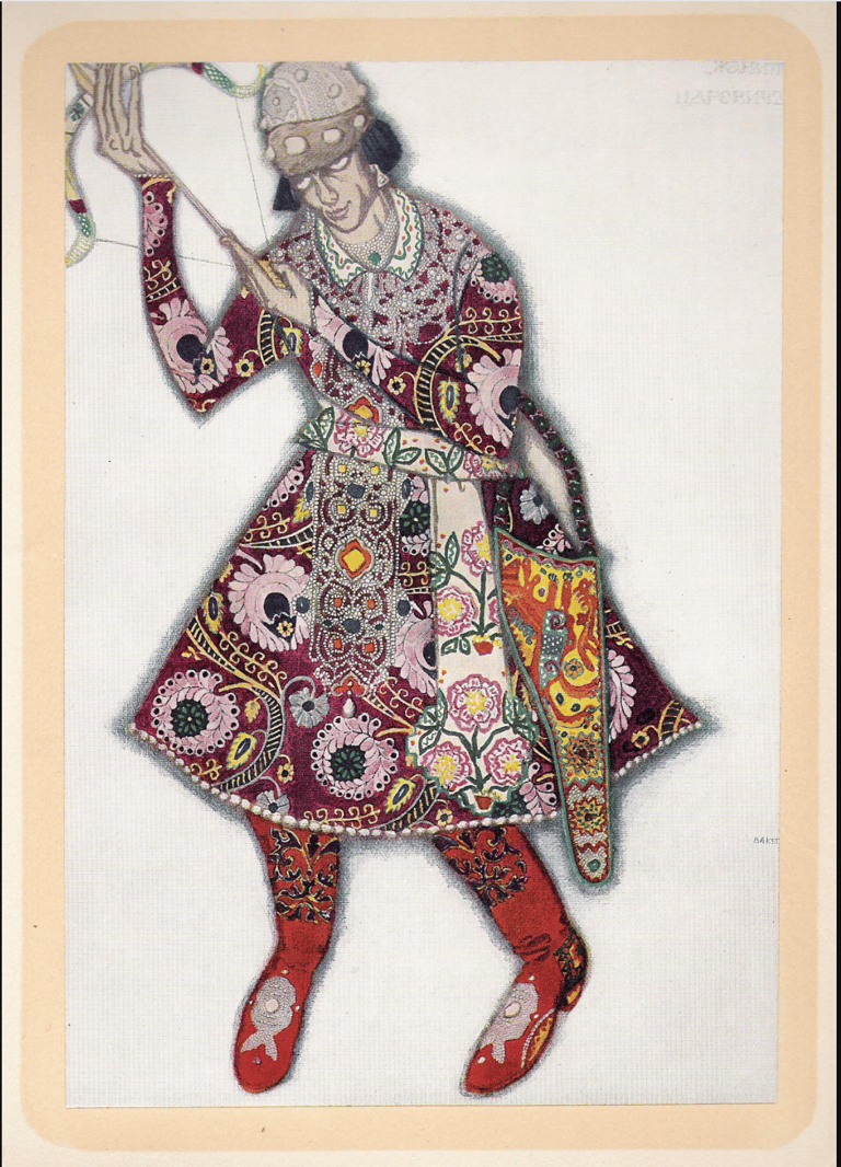 Costume dessiné par Léon Bakst pour le personnage d'Ivan Tsarévich dans L'Oiseau de feu de Michel Fokine, 1910.