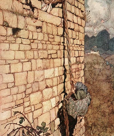 Arthur Rackham, illustrations pour The Robber Bridegroom (Le fiancé brigand) dans Grimm's Fairy Tales (Contes des Grimm)(1909), Constable & Cie, Londres, Angleterre, p. 170-171.