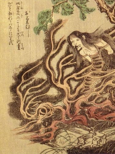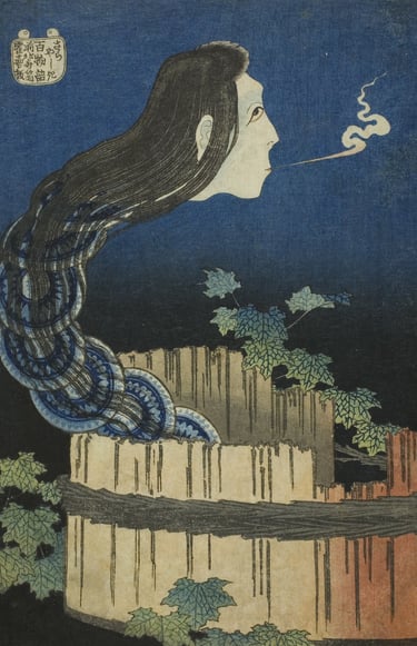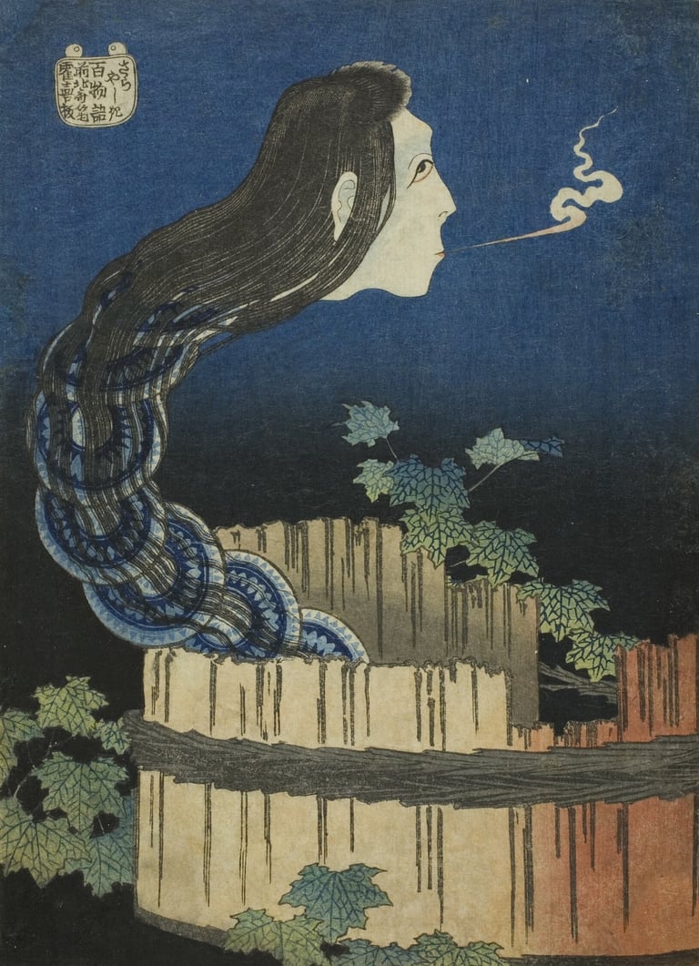 Site www.artic.edu, consulté le 8 avril 2026 : https://www.artic.edu/artworks/47407/the-mansion-of-the-plates-sara-yashiki-from-the-series-one-hundred-ghost-tales-hyaku-monogatari