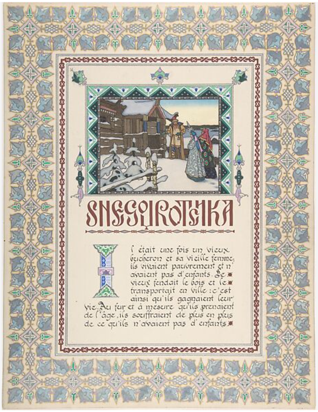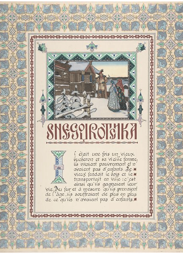 Illustrations pour Снегурочка: русская сказка (La Fille des neiges : conte russe), Éd. I. D. Sytina, Bibliothèque nationale russe, 1916, p. 1, 4, 6, 8, 10, 11, 12, 13, 15, 17, 19.