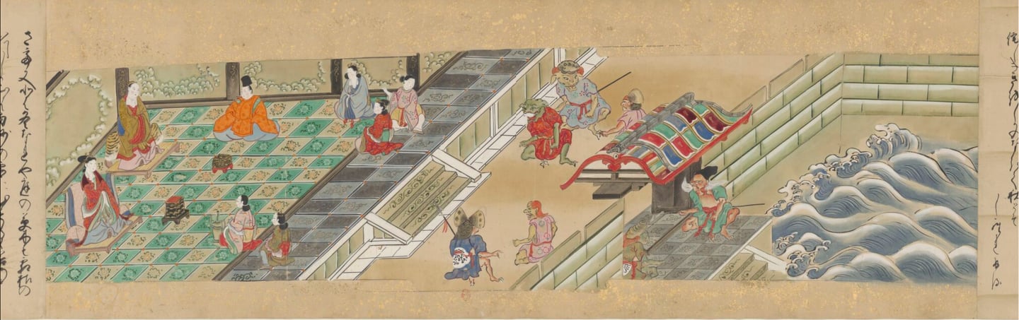 Urashima Tarô reçu au palais du dragon (XVIIème siècle), rouleau n°4169, département des manuscrits japonais, Bibliothèque nationale de France, Paris.