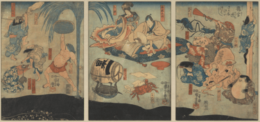 Site collections.artsmia.org, consulté le 26 septembre 2025 : https://collections.artsmia.org/art/122632/sea-creatures-entertain-urashima-taro-and-oto-hime-in-the-dragon-palace-utagawa-kuniyoshi