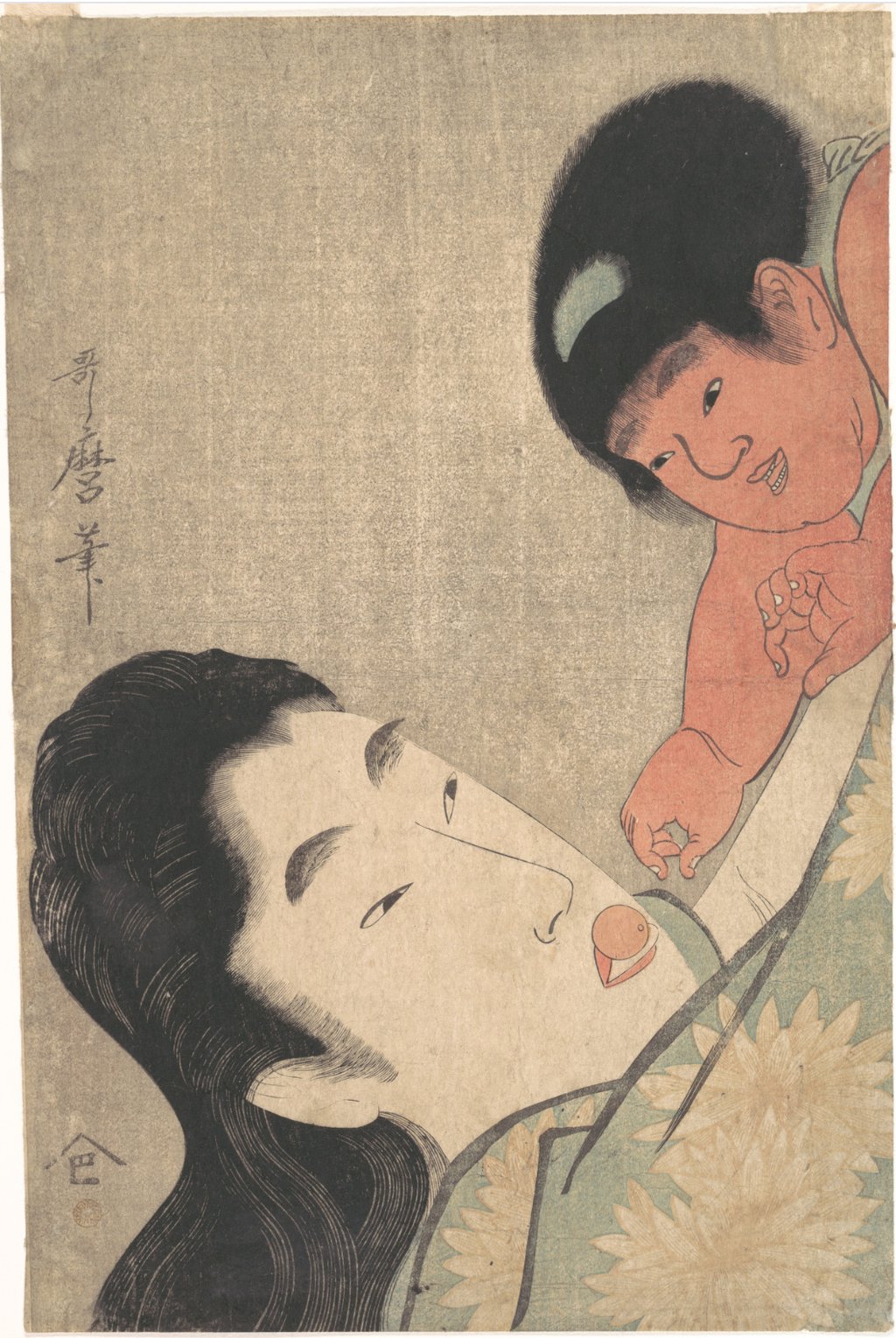 北川宇太麿 Kitagawa Utamaro, 山姥と金太郎 (Yamauba and Kintarō)(vers 1795), nishiki-e, estampe sur bois, encre et couleurs sur papier, 38.4 cm x 22.5 cm, The Metropolitan Museum of Art.